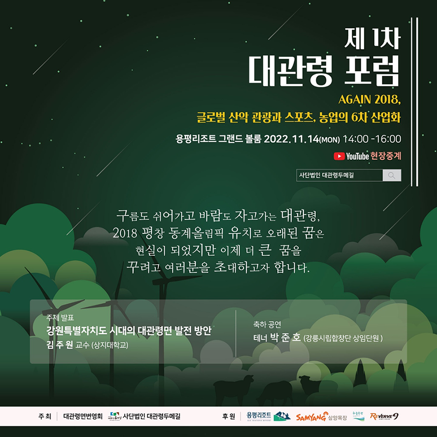 제1차 대관령 포럼 - 글로벌 산악 관광과 스포츠, 농업의 6차 산업화 페이지 정보 작성자대관령두메길 댓글댓글 0건 조회조회 9,481회 작성일 22-11-13 21:31 본문 ... 목록 이전글 2023년 신년인사 및 연회비 입금 안내 23.01.11 댓글목록 댓글목록 등록된 댓글이 없습니다.